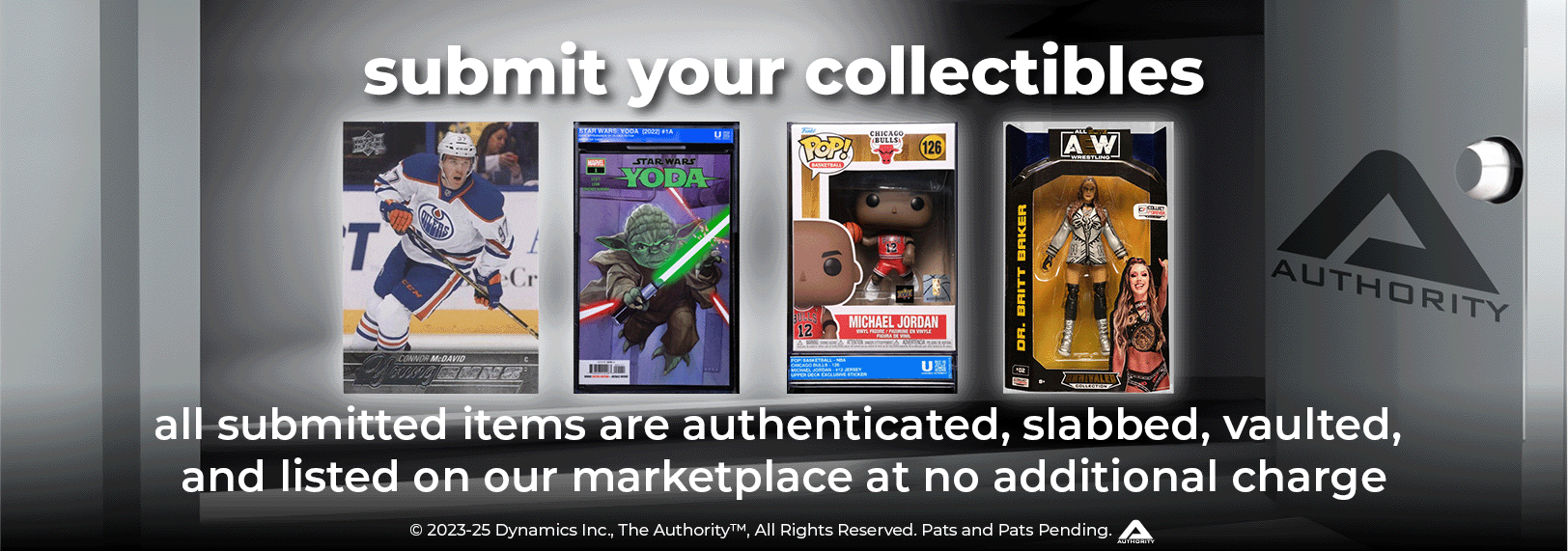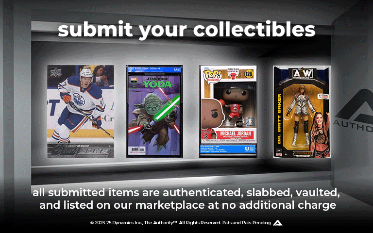 The Authority is the world's largest authenticated vaulted marketplace. Simply send us your graded or raw collectibles and we will identify, authenticate, image, and encapsulate them! Enhance the quality of your listings through additional services such as grading. Send us a box of random collectibles or import your collectibles from our channel retailer platforms at the press of a button. The collectible standard of the industry, we are growing to over 9 million channel retailer collectibles that can be imported from channel retailer platforms.